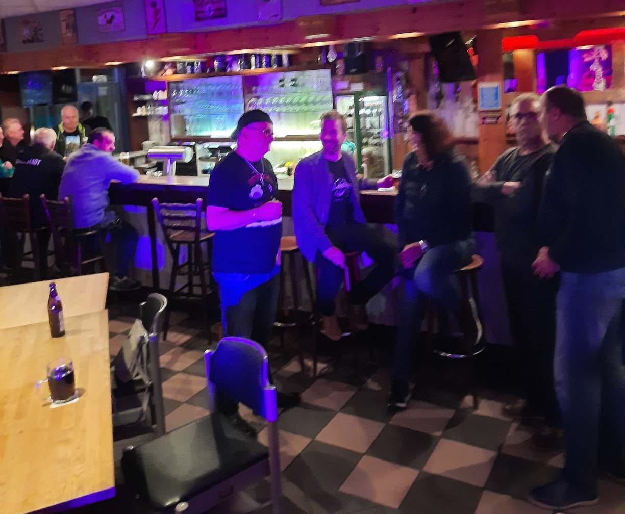 Na ja, als es auf acht Uhr zu ging, tauchten dann die Gäste auf. Und es dauerte nicht lange, bis sich eine richtig geile Stimmung unter den ca. 25 Zuhörern aufbaute. Ein Gast kam rein, weil er die laute Musik hörte (die Tür nach draußen war während des ganzen Gigs geöffnet) und abchecken wollte, wer da spielt. Eigentlich wollte er nach Hause zum Fußballgucken. Ein anderer gab uns während des Gigs zu verstehen, dass er Werbung für uns macht und mit seinem Handy über WhatsApp Kumpels informierte. Bei "Nicht mit mir" wurde lautstark in den Refrain mit eingestimmt "Leckt mich doch am Arsch" (logischerweise nach ein bisschen Üben). Wirklich gefreut habe ich mich, als mein Bruder Jörg mit Martina und Benny kamen und auch einen schönen Abend im Balu mit uns hatten. Dass der Sound passte und man die Texte gut verstand rundete für sie den Gig ab.