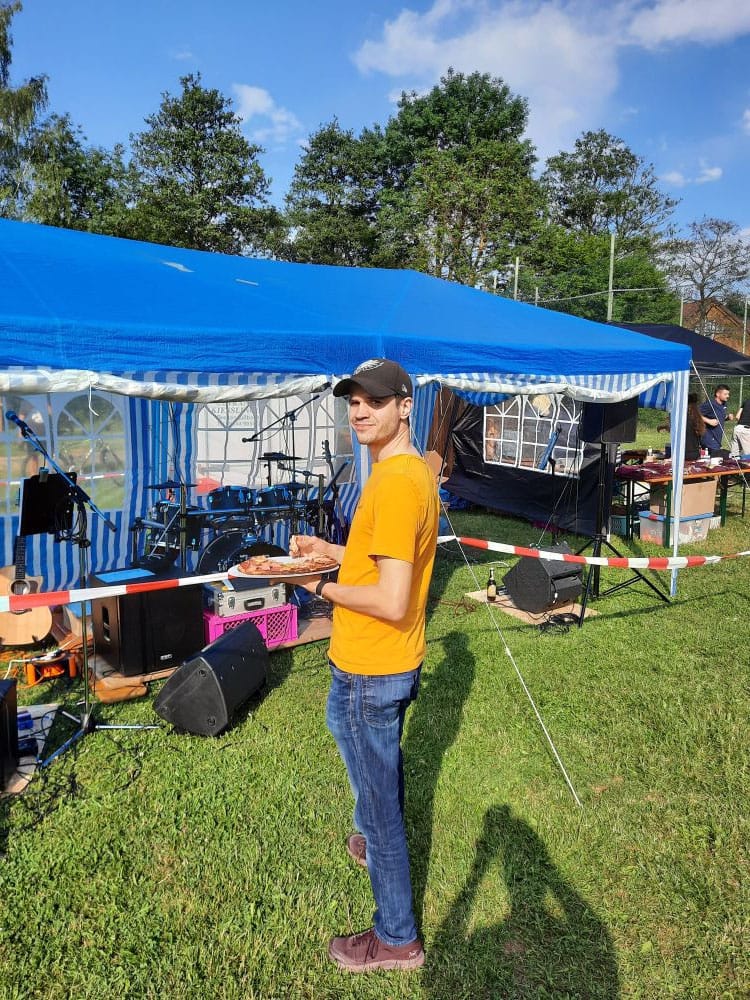 Als wir dann Punkt sechs Uhr die Instrumente in die Hand nahmen und gemäßigt loslegten, war unsere Begeisterung groß. Was war das für ein geiler Sound. Und es war ja nur der Mix aus dem Twitch-Gig, nicht abgestimmt auf eine Open-Air Situation. Da musste nicht viel nachgeregelt werden.