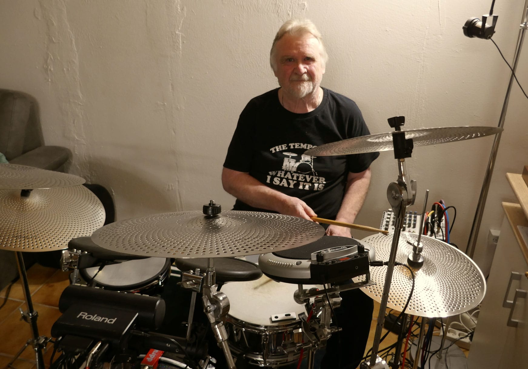 Sicher, 50 Jahre Drumerfahrung sind ein riesiges Fundament, auf dem man sicher stehen kann. Hinzu kommt Uwes Tätigkeit in den Coverbands, mit denen er seit den 70er Jahren unterwegs war. Vereinzelte Teilnahmen bei zwei Coverbands wird er, so es die Zeit erlaubt, auch weiterhin haben.